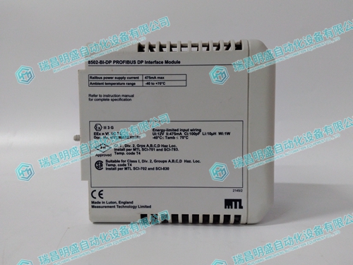 Overall, the 8502-BI-DP bus interface module provides important data acquisition and communication capabilities for industrial automation systems through its integrated PROFIBUS DP interface and digital input functions, helping to improve production efficiency and overall system reliability.