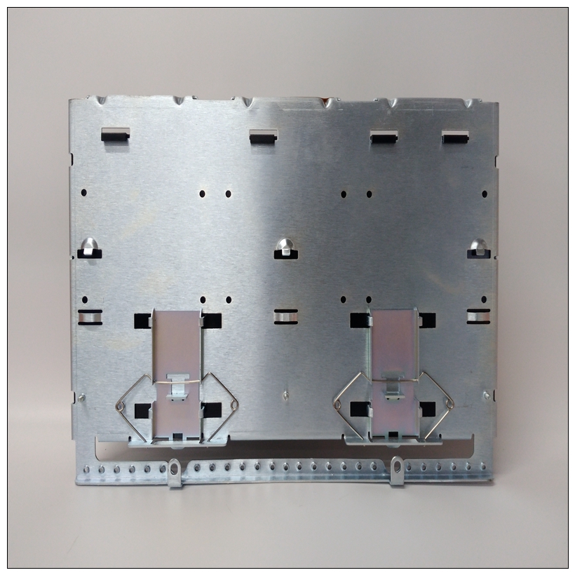 with two screws each at the right hand side. The bottom angle hinges features holes,